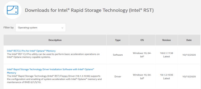 - Search for Intel Rapid Storage Technology chipset driver online or visit Intel RST to open a page with a list of drivers.