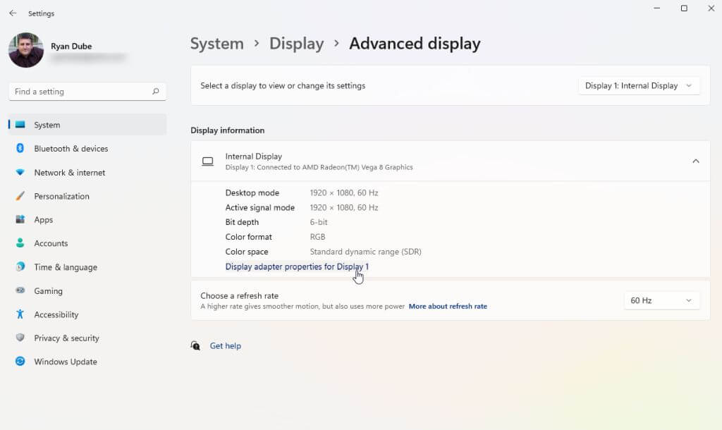- Find the video card in the list (if you have more than one) that you’ve connected the monitor to and select Display adapter properties for Display x (x will be the display number for that adapter output).