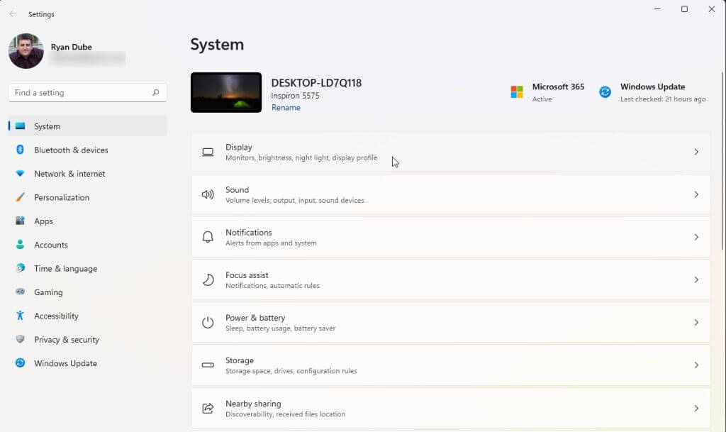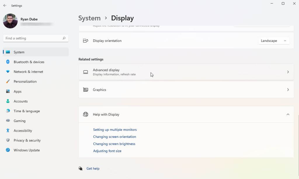- * Select the Windows Start menu, type “Settings” and open the Windows Settings app. In this app, select System from the left menu and then select Display in the right pane.