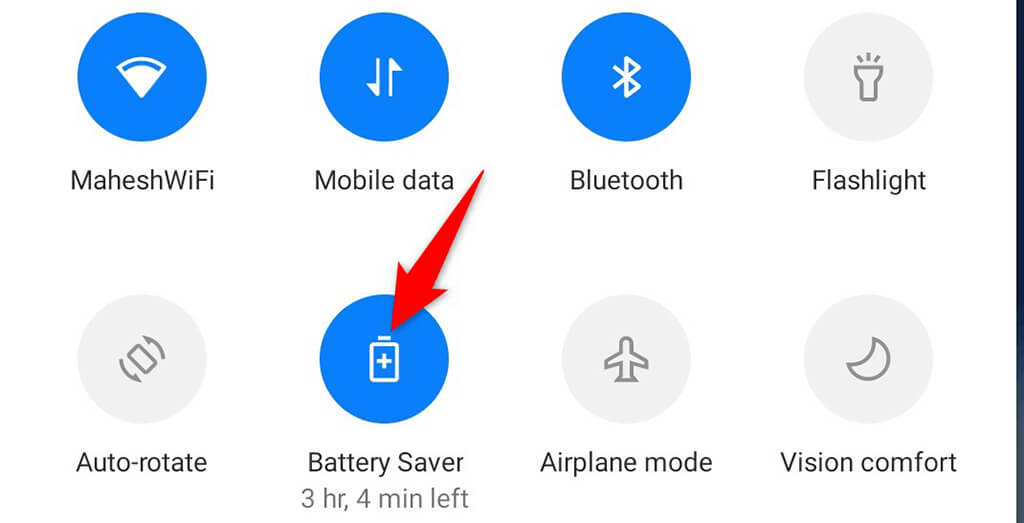 - Pull down from the top of your phone’s screen. * Select the **Battery Saver** tile to disable the mode.