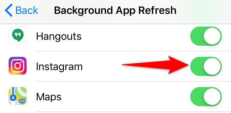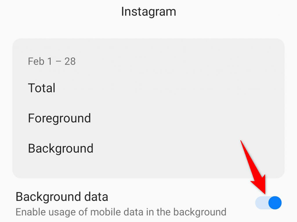 Instagram requires access to the internet, even in the background, to send you timely notifications. If your phone restricts background data for the app, you’ll have to turn the option on to resolve your problem.