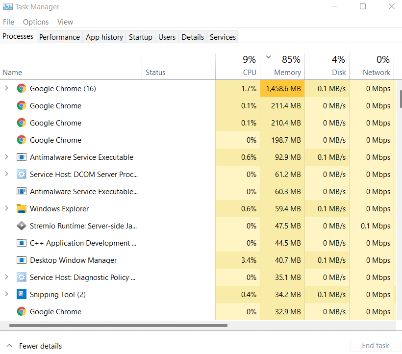 Lots. You can open Task Manager on your PC to check how much memory and CPU is being taken up by all the processes running on your computer. To ensure that your video game can get all the resources it needs, consider quitting any apps hogging up too much memory.