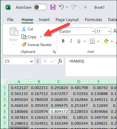- Go back to your original workbook and select the entire worksheet by pressing Ctrl + A. Alternatively, use your mouse to only select the data you want to copy. * Copy the selected data by pressing Ctrl + C or by pressing the Copy button in the Home tab.