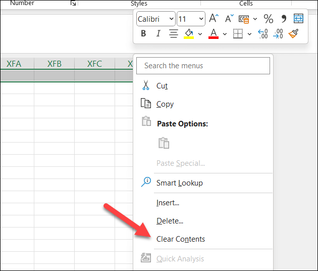 You can also repeat this for a larger number of cells by pressing Ctrl + Shift + Right Arrow and Ctrl + Shift + Down Arrow in sequence first before clearing the contents of your cells.