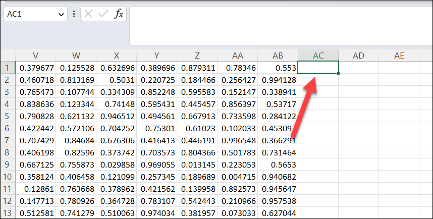 - Select the cell in row 1 in the first empty column to the right of your last used column.