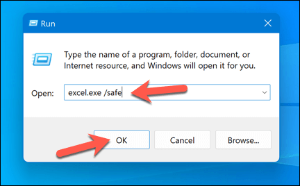 - In the Run dialog box, type excel.exe /safe and press Enter. This command will launch Excel in Safe Mode.