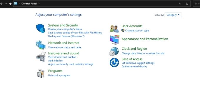 - Open the Start Menu and type Control Panel, then select it from the results.