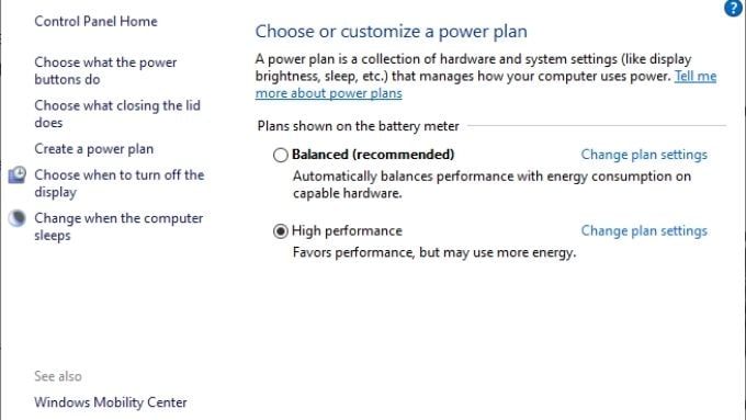 - Select **Hardware and Sound** > **Power Options**.