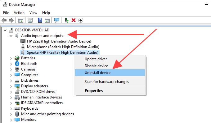 Uninstall and Reinstall Audio Device