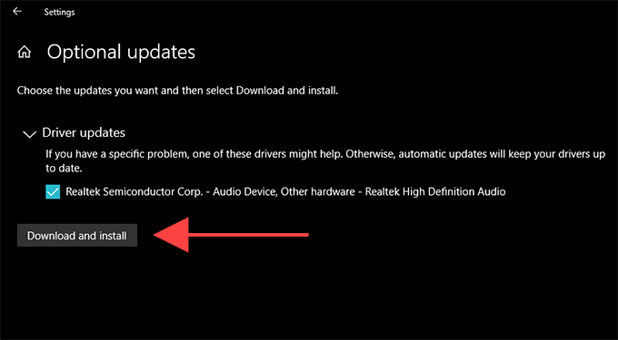 - Select View optional updates (if visible on the same screen). Then, check the boxes next to any audio device-related updates and select Download and install.
