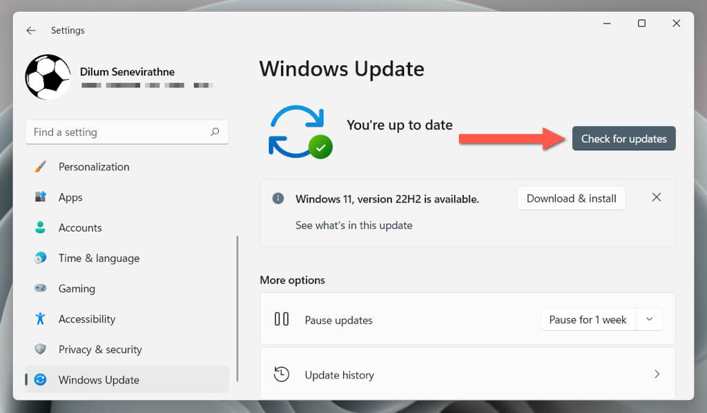 If the “NVIDIA Installer cannot continue” error appears right after a fresh Windows installation, check if there are pending operating system updates you’ve yet to download and install. To do that: