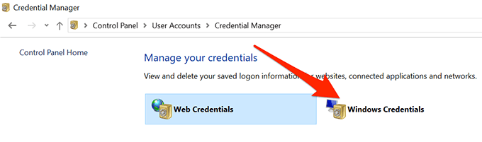 - Click on the Windows Credentials tab as that’s where your Outlook logins are saved.
