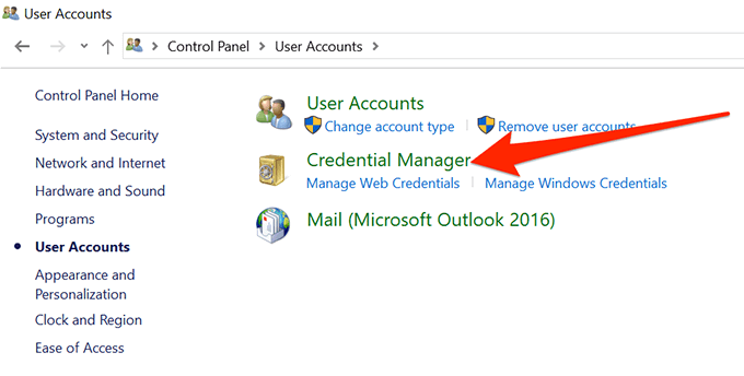 - Select the option that says Credential Manager.