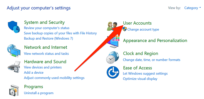 - Click on the User Accounts option on the following screen.