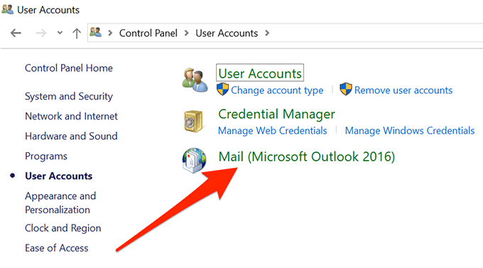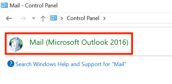 - Search for Mail using the Control Panel search box and click on the only result that appears on your screen.