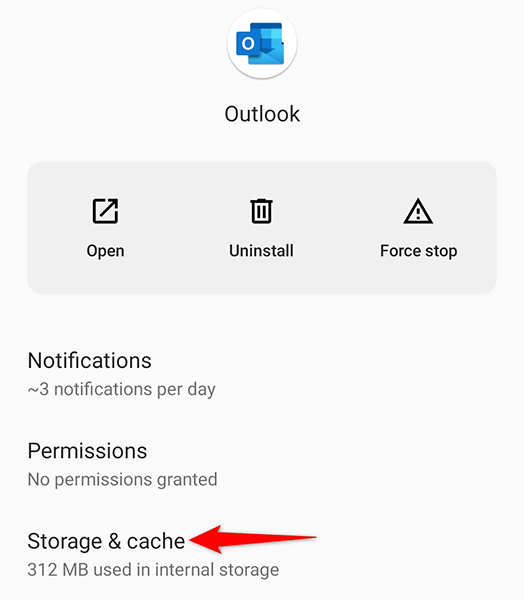 - Tap Storage & cache on Outlook’s app page.