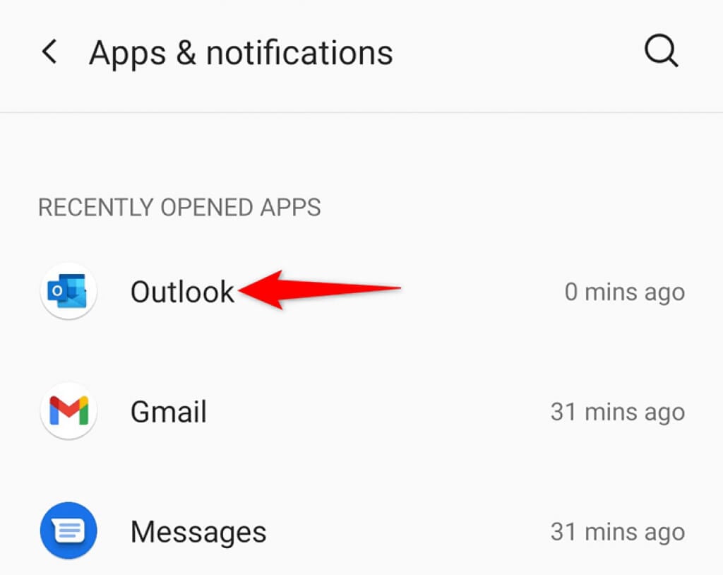 - Head to Apps & notifications > Outlook from the main Settings screen.