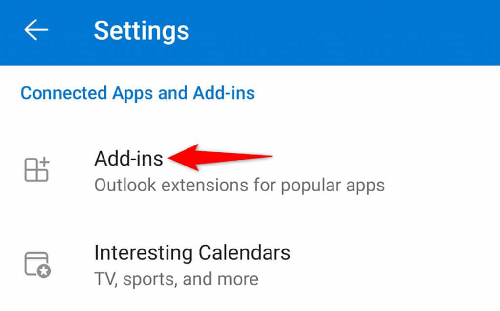 - Scroll down and tap the Add-ins option.