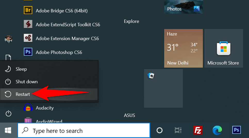 - Choose Restart in the Power menu.