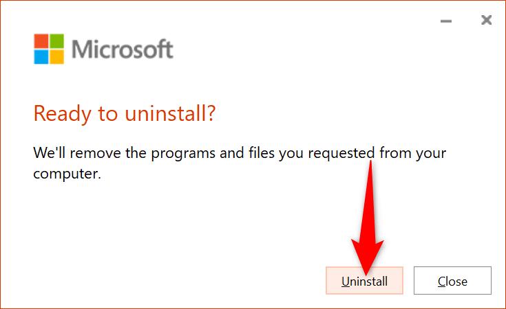 - Select **Yes** in the **User Account Control** prompt. * Choose **Uninstall** in the uninstall wizard. Then, follow the on-screen instructions to remove all Office apps from your PC.