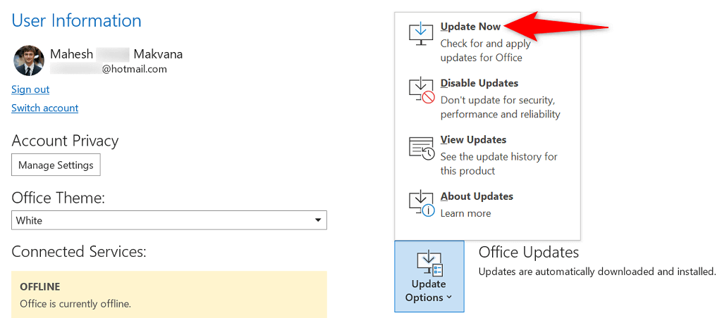 You can update Outlook and other Office apps on your PC in a few clicks.