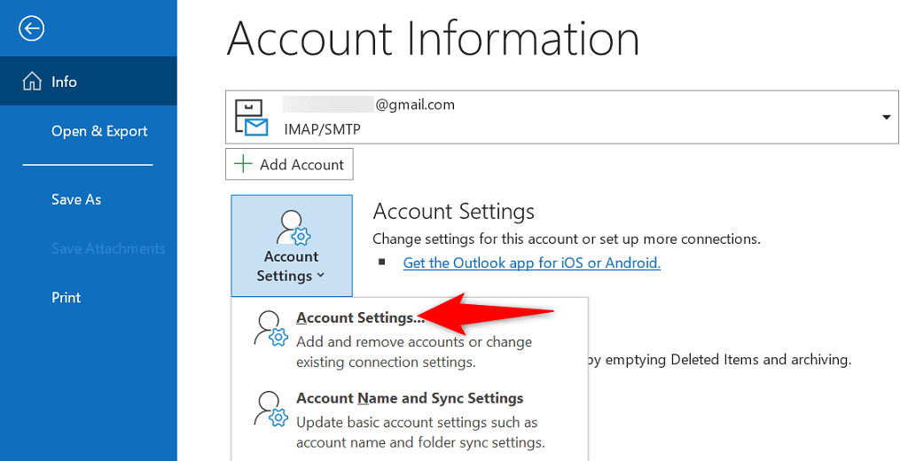 - Choose Account Settings > Account Settings on the right pane.