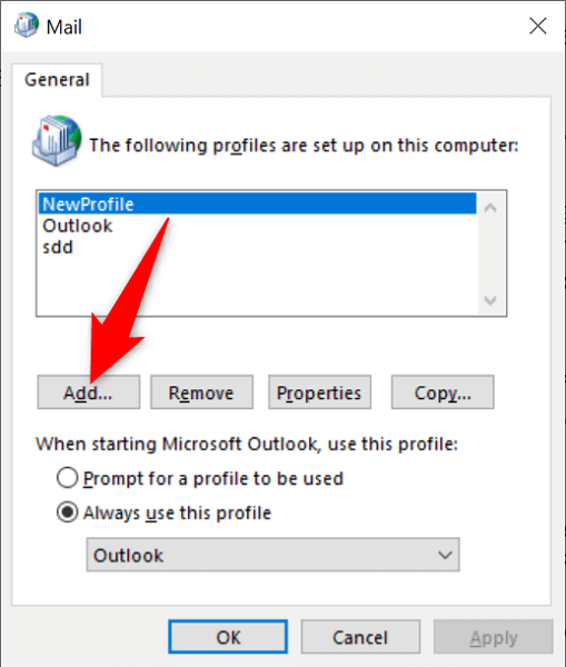 If you tried fixing your Outlook profile, but that didn’t fix the problem, create a new profile in the app and add your email account to this new profile. This should likely resolve your “Sorry, we’re having trouble opening this item” problem.