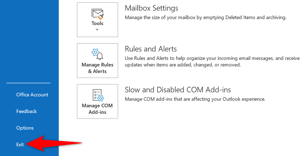 One way to fix most minor issues with Outlook is to restart the app. Doing so gives the app a fresh new chance to load your configuration, fixing minor problems with the app.