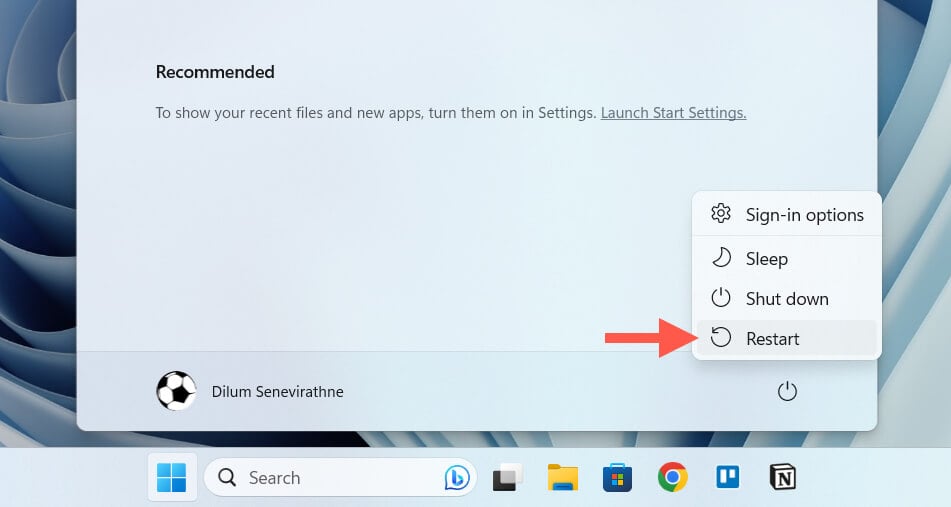 Restarting your PC is a quick and fast way to resolve loads of underlying issues with Windows. Just open the Start menu, select Power > Restart, and rerun Windows Update after you log back into the desktop.