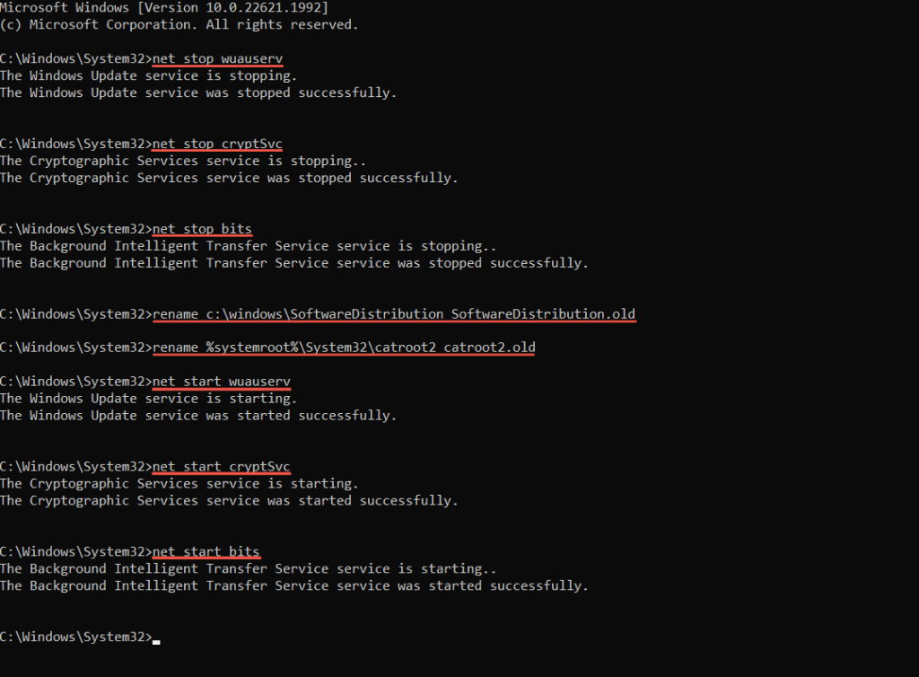 Reset the Windows Update Cache
