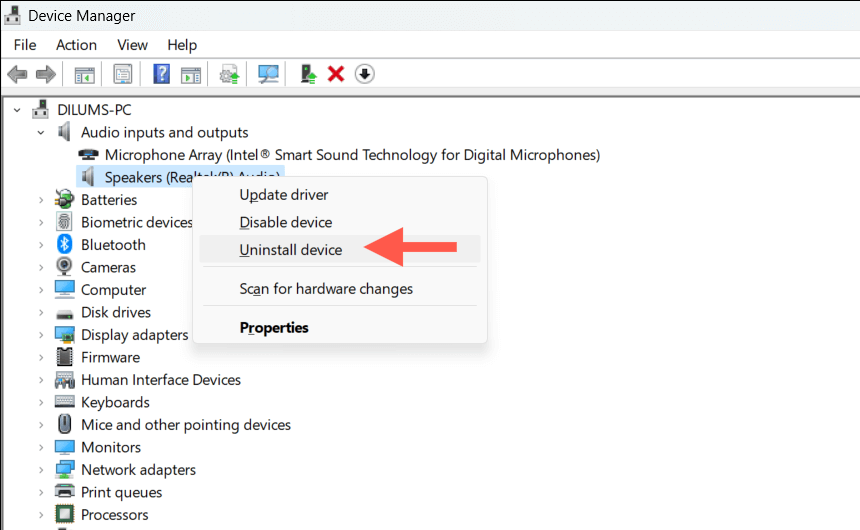 If everything fails, try removing and reinstalling the Realtek audio or network drivers on your Windows PC. This action eliminates potential driver corruption issues leading to update errors. To do that: