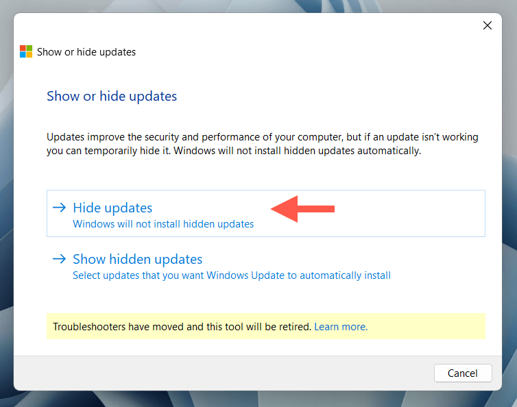 Use the Show or Hide Updates Troubleshooter