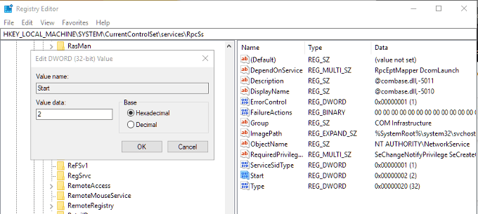Navigate to the following key: **HKEY_LOCAL_MACHINE\SYSTEM\CurrentControlSet\services\RpcSs **