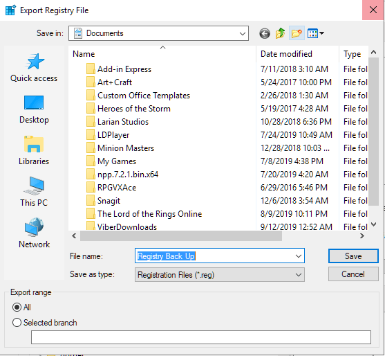 If everything has been fine up to this point, then the last thing you can take a look at is the registry entries that control the RCP and DCOM services for corruption. I don’t recommend tinkering with the registry, especially for beginners, so to be safe, we’re going to back up the registry before messing with anything.