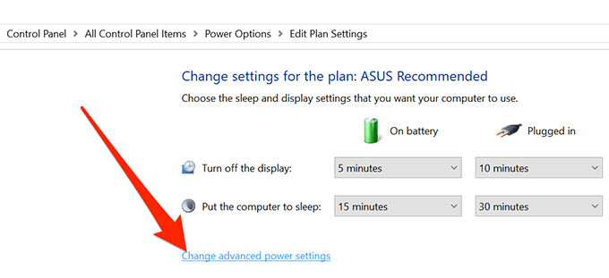 - Click on Change advanced power settings.