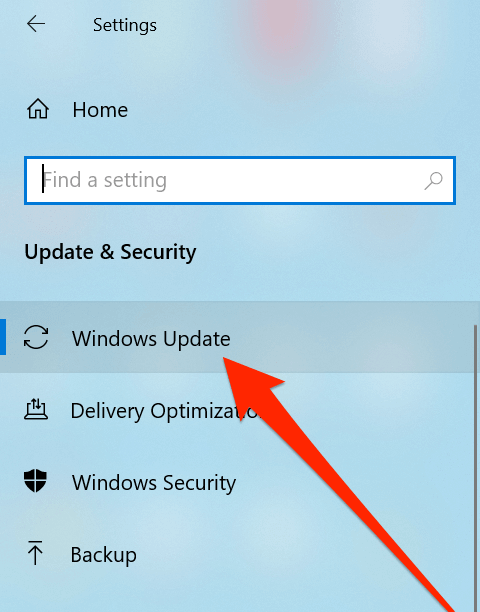 - There’ll be several options in the left sidebar on your screen. Find the one that says Windows Update and click on it to open it.