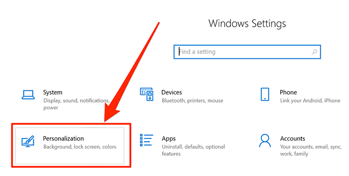 - Click on the option that says Personalization to access the Windows 10 screensaver locations where you can view your screensavers.