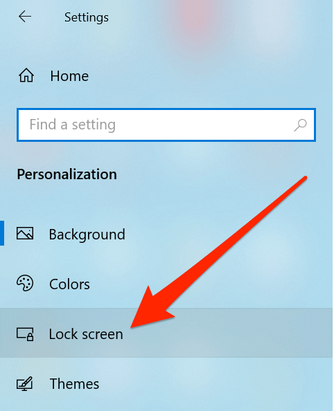 - Select Lock screen from the options available in the left sidebar.