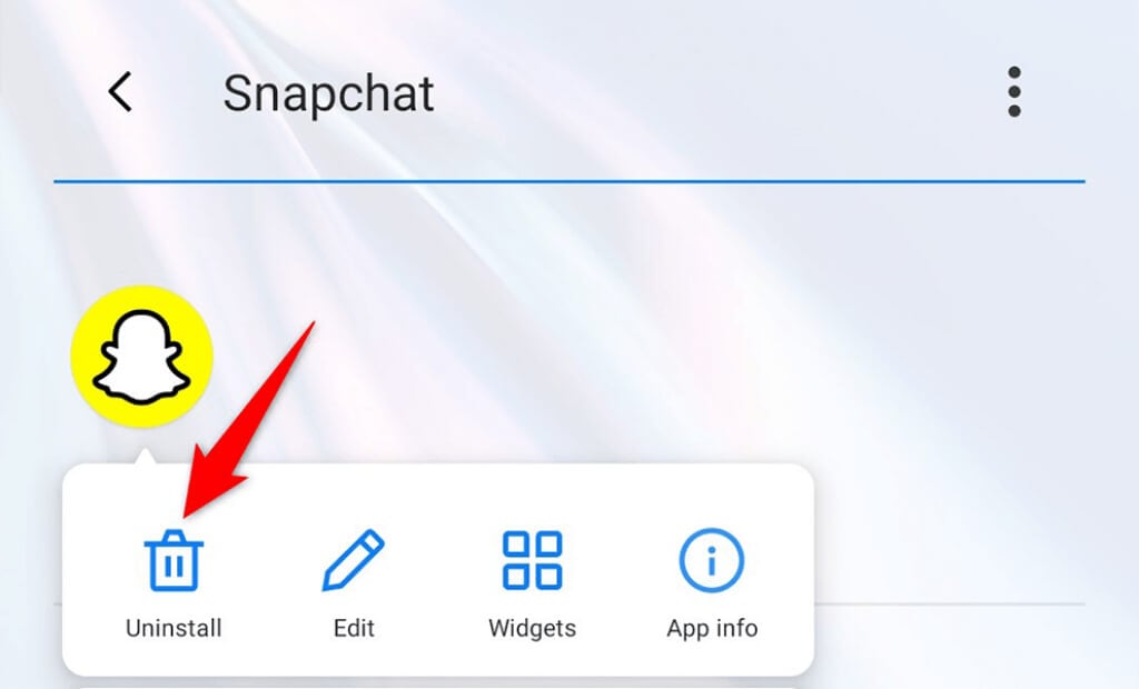 - Find **Snapchat** in your app drawer or on your home screen. * Tap and hold on **Snapchat** and select **Uninstall** from the menu.