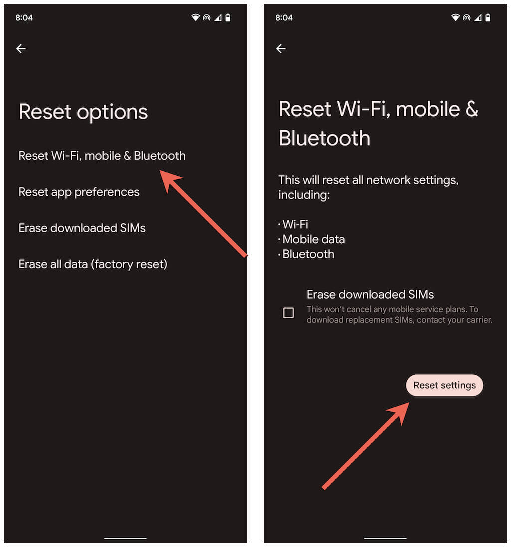 If none of the fixes above help and Speech Services by Google language updates continues to get stuck at the “Waiting for network connection” error, it’s a good idea to reset the network settings on your Android phone. To do that: