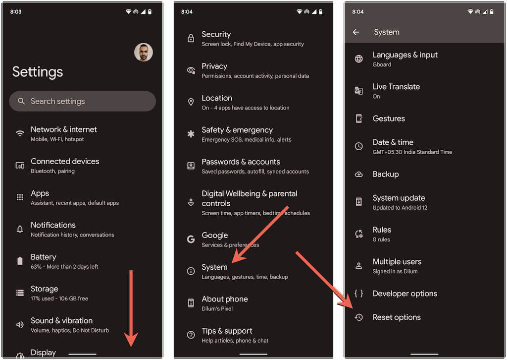 Tap System > Reset options.