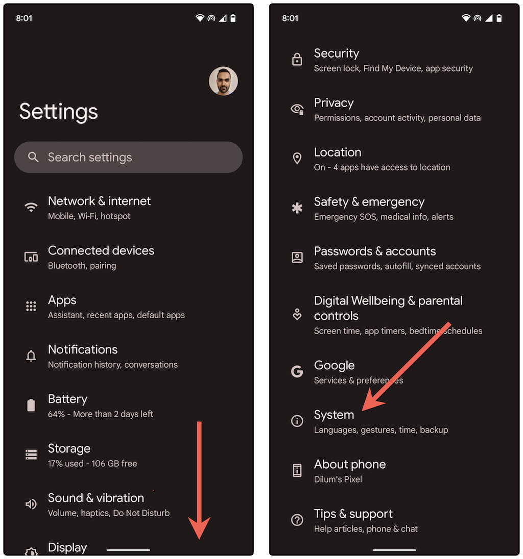 Scroll down and tap System.