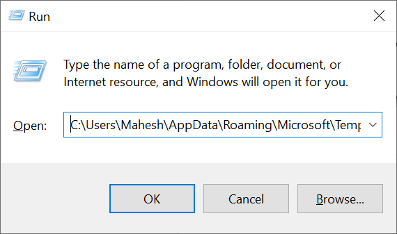 - Type the following in the Run box and press Enter. Replace username with the username you use on your PC in the below path: C:UsersusernameAppDataRoamingMicrosoftTemplates