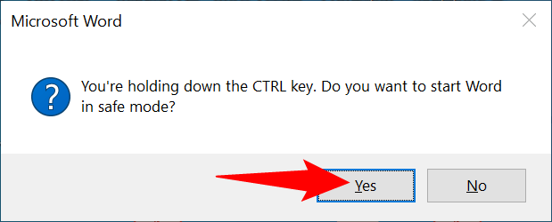- Launch Word in safe mode by finding the app in the Start menu, holding down the Ctrl key on your keyboard, and selecting the app in the search results.