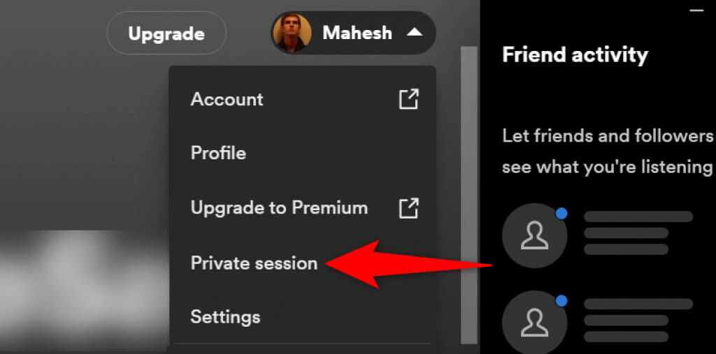 - You’ll see a Private session button at the top, indicating the feature is activated. * You can now play your favorite music in the app. * Later, you can turn off your private session by selecting your name at the top and choosing Private session.