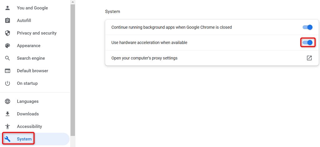 Hardware acceleration is a feature in Chrome and Edge that utilizes your machine’s GPU to handle specific processes, resulting in less load on your CPU. When you face issues in your browsers, try toggling off that feature.