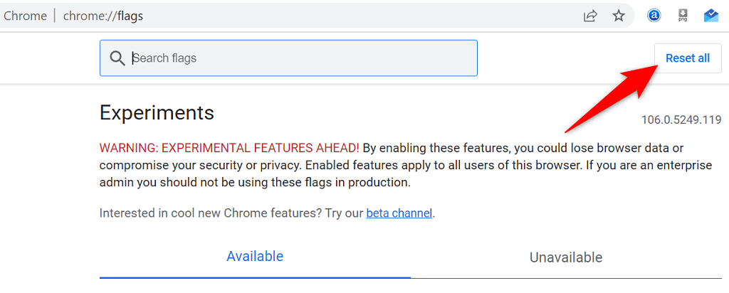 Chrome and Edge’s experimental features are called flags. These flags allow you to activate and use features that aren’t yet official in your browser. One or more of these unofficial features may be causing the “status_breakpoint” error in your browsers.