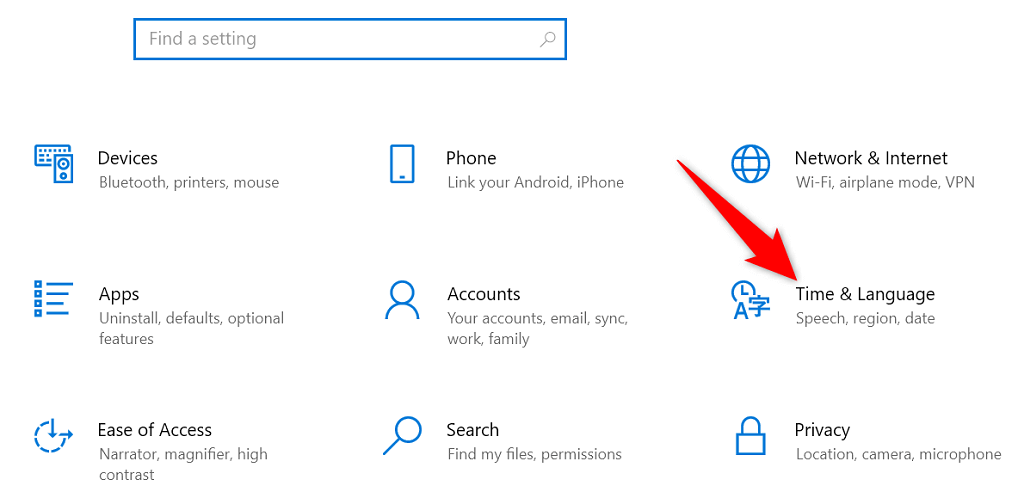 - Choose Time & Language in Settings.