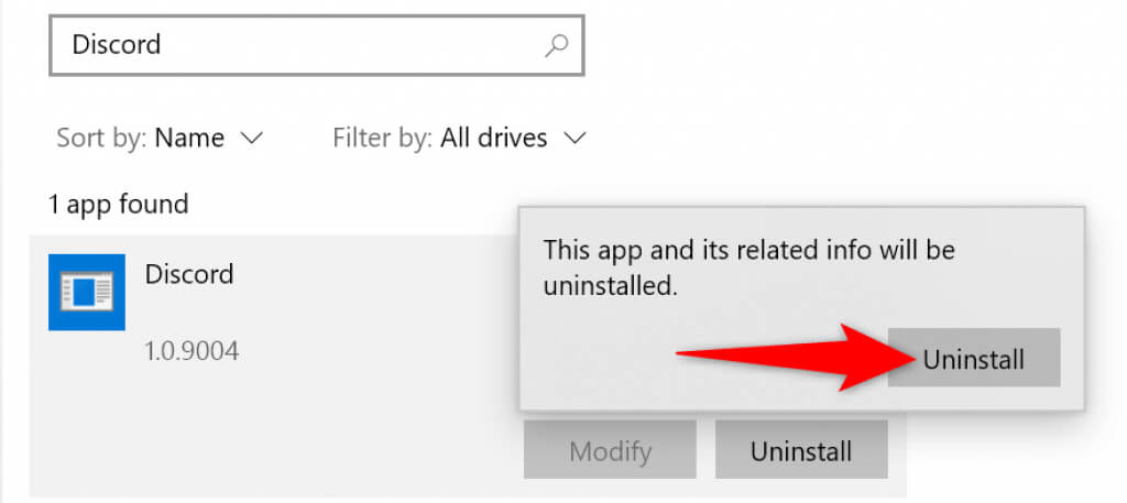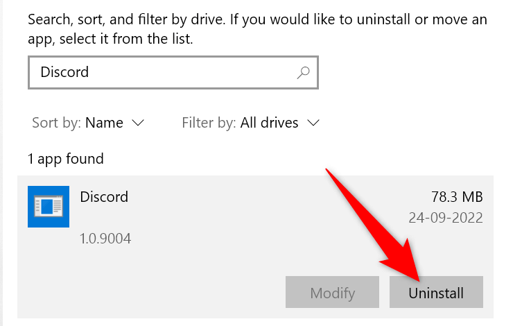 - Find and select **Discord** in the app list. Then, choose **Uninstall**.