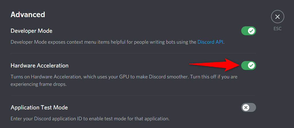 Discord’s Hardware Acceleration feature aims to make your app experience smoother by utilizing your GPU’s power. It’s worth toggling this option to get around your black screen issue in the app.